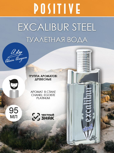 ALAIN AREGON Туалетная вода мужская EXCALIBUR STEEL, древесный аромат 95 мл