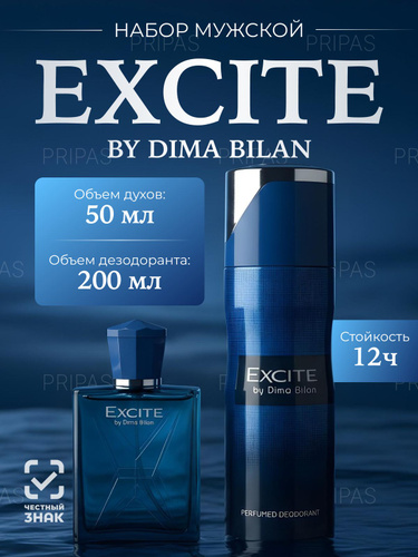 Мужской набор духи и парфюмированный дезодорант Excite by Dima Bilan / Иксайт бай Дима Билан. 250мл