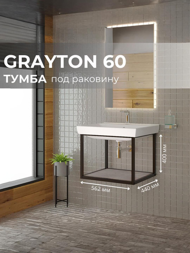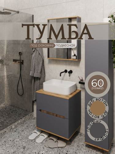 Тумба под раковину в ванную подвесная, 60 см, Графит/Дуб вотан
