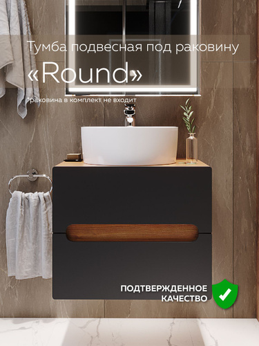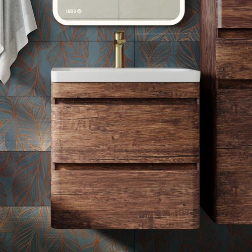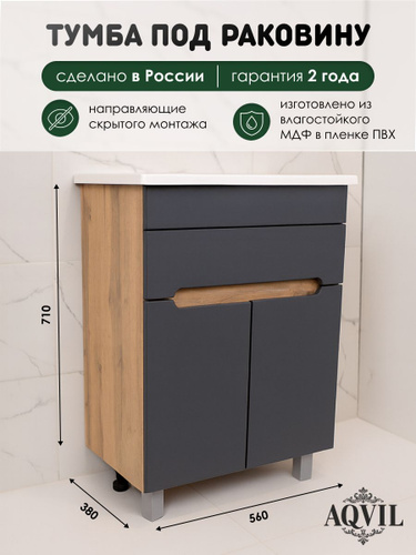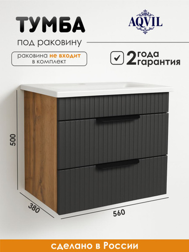 AQVIL Тумба под раковину в ванную подвесная, тумба для ванной Verona 60, 56*38*50 см, Дуб Вотан/графит софт