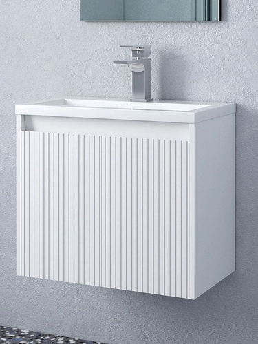 Тумба под раковину без столешницы Corozo Блисс 60 подвесная, белая, матовая, из МДФ, тумба для ванной, с дверками