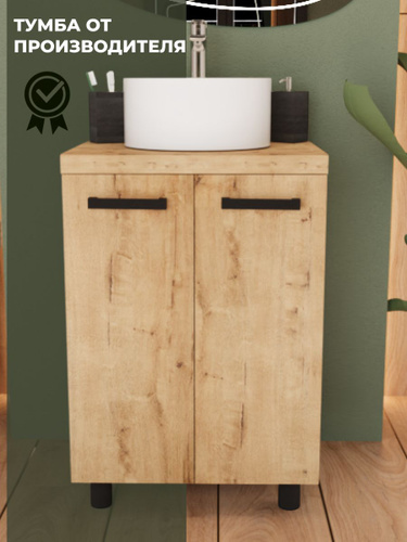 Тумба с раковиной 60 напольная шкаф разборный в ванную цвет дуб Норд+Комо