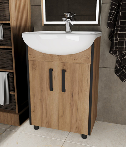 GLAV Mebel Тумба под раковину в ванную напольная, тумба для ванной VIOLA 60, 56*38*71 см, Дуб вотан/графит софт, МДФ/ЛДСП