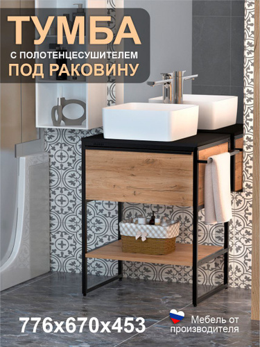 Тумба под раковину ЛОФТ с ящиком и полотенцесушителем на металлокаркасе