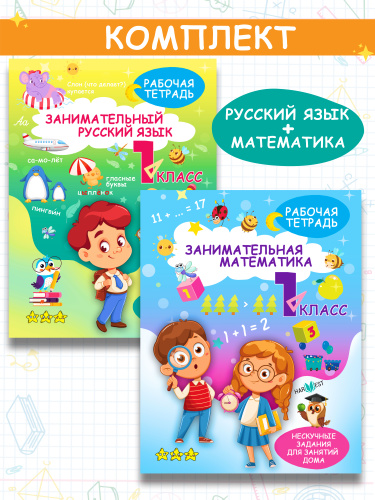 Набор рабочих тетрадей, тренажер по математике и русскому языку для 1 класса . Обучение счету, грамоте, письму | Агафонова А. Д.
