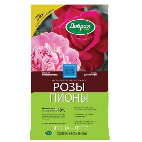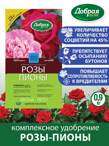 Удобрение для роз, пионов, хризантем и садовых цветов комплексное минеральное Добрая сила, пакет 0,9 кг