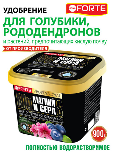 Удобрение для голубики, брусники, гортензий, рододендронов, хвойных и всех кислотолюбивых растений ВОДОРАСТВОРИМОЕ с серой и магнием Бона Форте, 0,8 кг