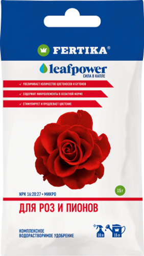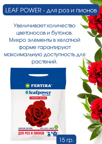 Фертика LeafPower для роз и пионов 15 г. Комплексное листовое удобрение Fertika для открытого грунта и теплиц.