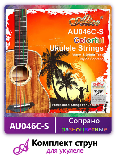 Цветные струны для укулеле сопрано ALICE AU046C-S, разноцветный нейлон. Комплект