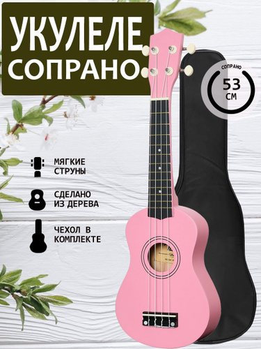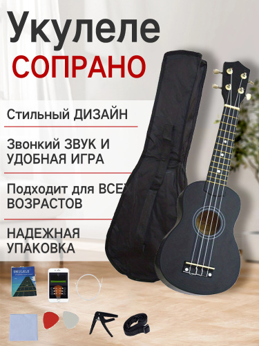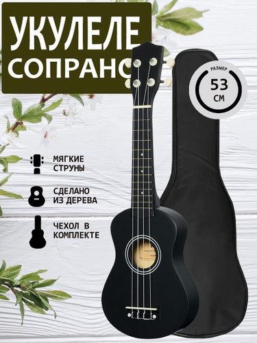 Укулеле сопрано,Yky1 4-струнная, корпус Липа 21"Наше Лето Укулеле черная с чехлом 4-струнная