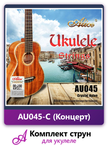 Струны для укулеле концерт ALICE AU045-C, прозрачный нейлон. Комплект