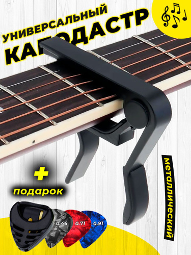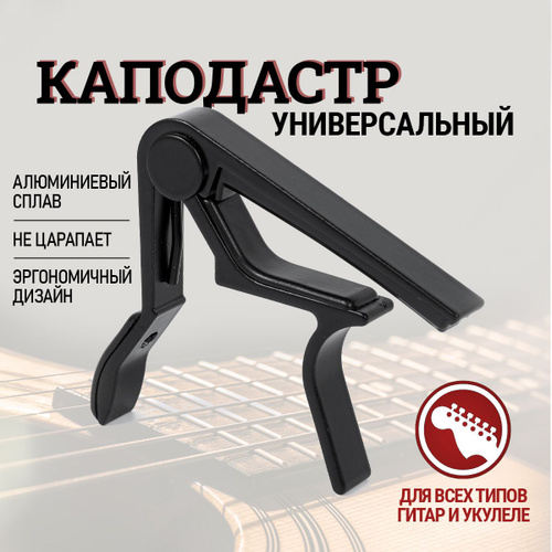 Каподастр для гитары акустической, классической, укулеле, электрогитары. Зажим для струн универсальный, цвет черный