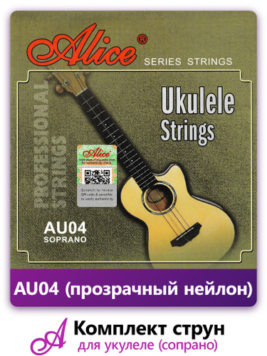 Струны для укулеле сопрано ALICE AU04 (прозрачный нейлон). Комплект струн
