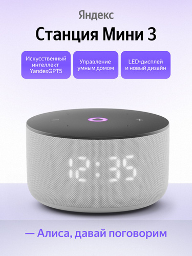 Умная колонка Яндекс Станция Мини 3 с Алисой на YandexGPT,12Вт, серая (YNDX-00027GRY)