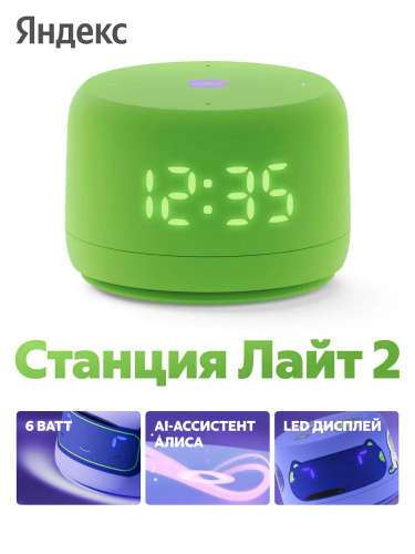 Умная колонка Яндекс Станция Лайт 2 с Алисой, без часов, 6 Вт, зеленый