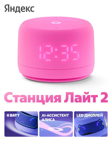 Яндекс Станция Лайт 2 умная колонка с Алисой с часами на YaGPT, 6 Вт, Bluetooth 5.0, Wi-Fi, дисплей, розовая ( YNDX-00026PNK)
