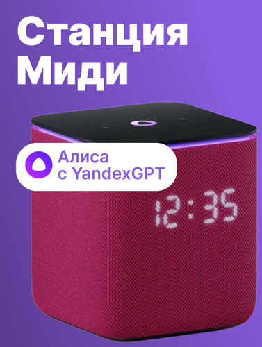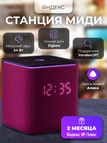Яндекс Станция Миди умная колонка с Алисой с часами на YaGPT, Bluetooth 5.0, Wi-Fi, Zigbee, USB Type-C, малиновая (YNDX-00054PNK)