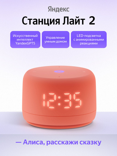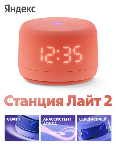 Умная колонка Яндекс Станция Лайт 2 с Алисой на YandexGPT коралловая
