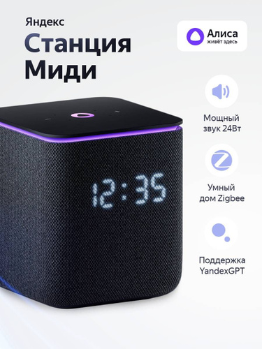 Яндекс Станция Миди с Алисой Умная колонка на YaGPT с Zigbee, черная
