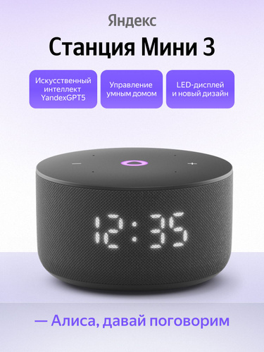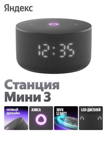 Умная колонка Яндекс Станция Мини 3 с Алисой, LED-дисплей, черная