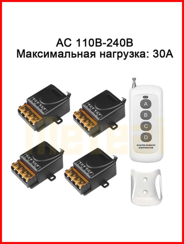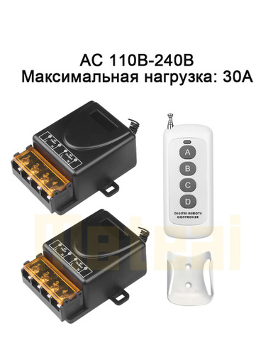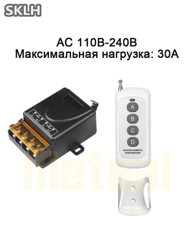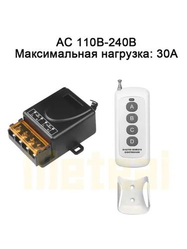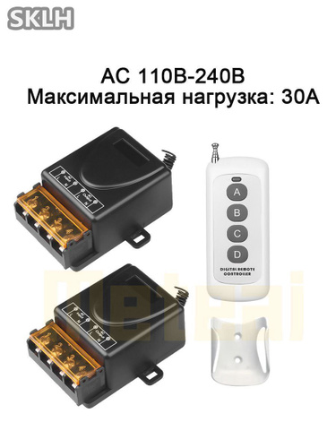 Радиоуправляемое реле AC110В - 240В 30А + 433МГц 4-клавишный пульт / Радиореле для лампы,ворот, шлагбаумовмный дом. Дистанционный выключатель. Беспроводной переключатель.