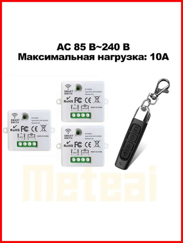 3 шт. Радиореле 220В 10А 433МГц + 1 4-х пластилиновый пульт/для фонаря, ворот, шлагбаума. Дистанционный переключатель. Беспроводной