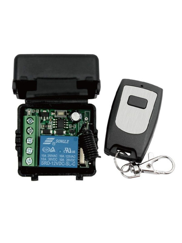 Комплект радиоуправляемое реле 12В 10А 433МГц (дистанционный радио выключатель) + пульт дистанционного управления.