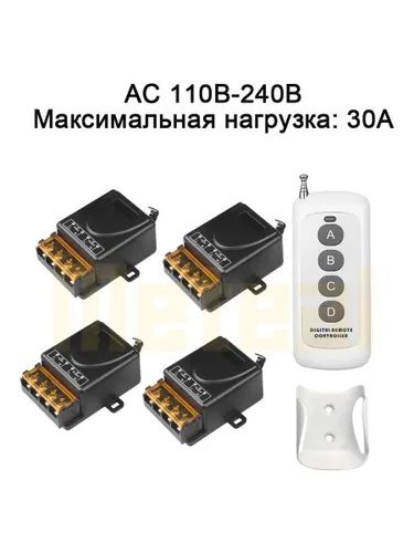 4 шт. Радиореле AC110В - 240В 30А + 433МГц Пульт дистанционного управления с клавишами/для фонаря, ворот, шлагбаума. Дистанционный переключатель. Беспроводной