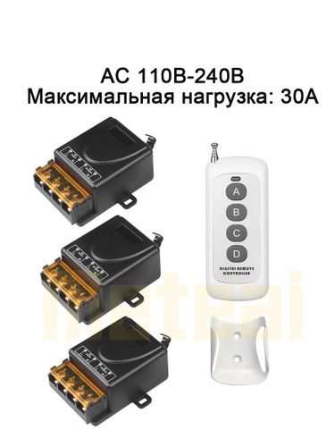 3 шт.Радиоуправляемое реле AC110В - 240В 30А + 433МГц 4-клавишный пульт / Радиореле для лампы,ворот, шлагбаумовмный дом. Дистанционный выключатель. Беспроводной переключатель.