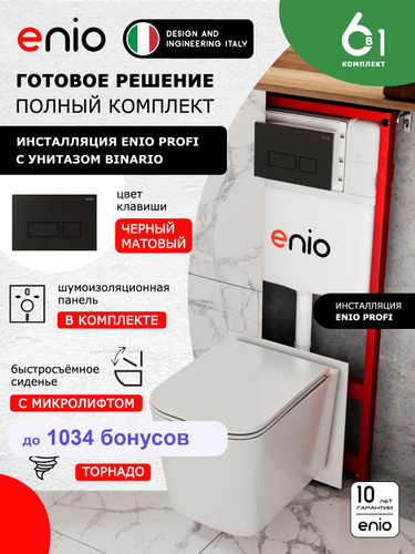 Комплект 3 в 1 инсталляция Enio Profi EN7050050 + Унитаз подвесной Enio Binario Tornado 1.0+ кнопка чёрная матовая Linea