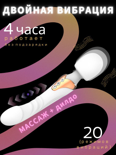 Вибратор для женщин для клитора микрофон 25,3 см двусторонний белый