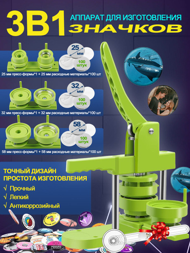 Аппарат для изготовления значков, 3 в 1, включает 300 заготовок для бейджей
