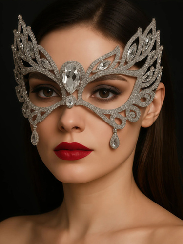 Серебристая венецианская маска с кружевом и кристаллами для маскарадных костюмов