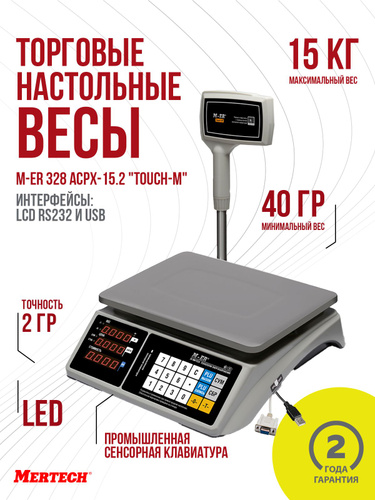 Торговые настольные весы M-ER 328 ACPX-15.2 светодиодный дисплей (Интерфейсы RS23, USB)