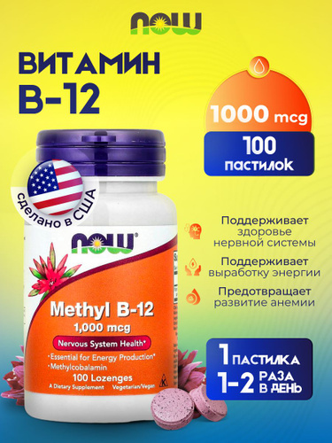 Метил Б12 Now Foods Methyl B-12 1000 мкг 100 пастилок