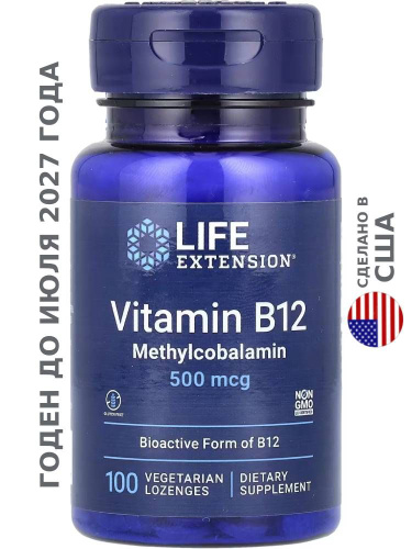 Витамин B12 500 мкг 100 капсул, вит В12 (метилкобаламин), vitamin B-12 от Life Extension, США
