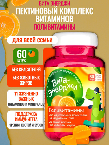 Вита-энерджи Комплекс витаминов и минералов апельсина 60шт жевательных пастилок СГ до 09.2026