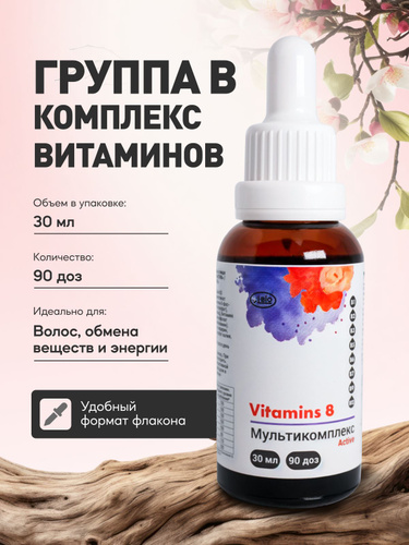 Витамины B1 B2 B3 B5 B6 B7 B9 B12 Мультикомплекс Актив / Vitamins В ACTIVE А-БИО, 30 мл