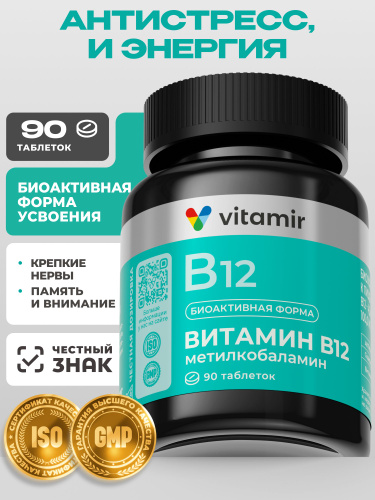 БАД Витамин В12 VITAMIR для красоты, нервной системы и мозга 60 таб.
