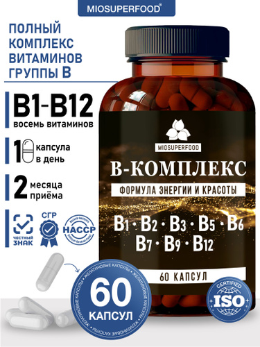 Витамины группы В 60 капсул Miosuperfood Миофарм. Комплекс для красоты и энергии для женщин и мужчины, vitamin B
