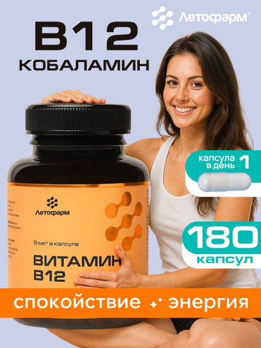 Витамин В12, 9 мкг, 180 капсул, Летофарм