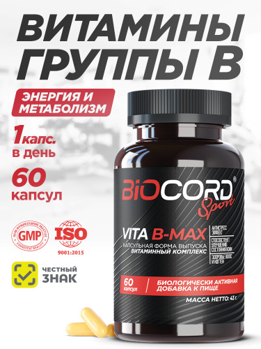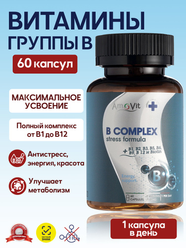AmoVit Витамины группы В, комплекс витаминов для женщин и мужчин, 60 капсул