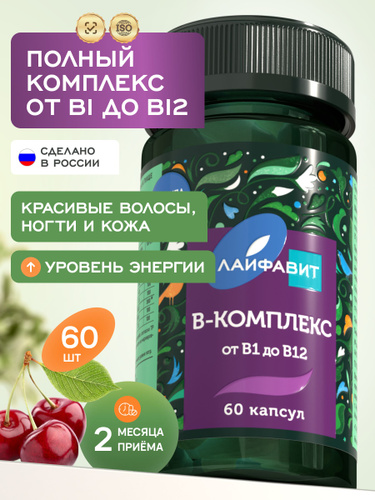 Витамины группы B, БАД для женщин и мужчин, b комплекс 60 капсул