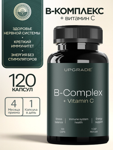 Витамин B-Комплекс + Витамин С 300 мг, 120 капсул, бад для энергии и нервной системы UPGRADE