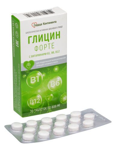 Глицин форте Сердце Континента с вит. В1. В6. В12 таб. 600мг №30