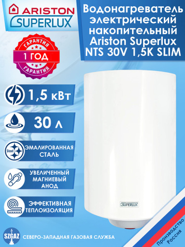 Водонагреватель электрический накопительный Ariston Superlux NTS 30V 1,5K SLIM, настенный электроводонагреватель Аристон Суперлюкс 30 литров, бак из эмалированной стали