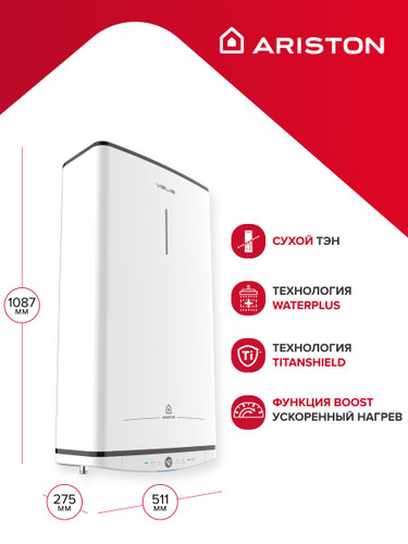 ARISTON (Аристон) водонагреватель накопительный Velis Lux ABSE Dry WiFi 100, 100 литров, плоский, электрический накопительный бойлер, сухой ТЭН, Wi-Fi