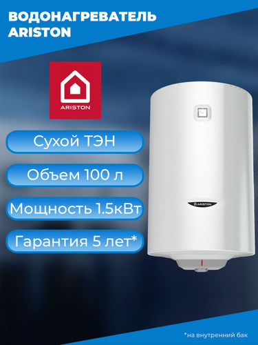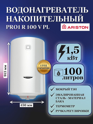 ARISTON (Аристон) водонагреватель накопительный PRO1 R 100 V PL, 100 л, 1,5 кВт, мокрый ТЭН, электрический накопительный бойлер