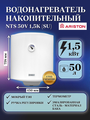 ARISTON (Аристон) водонагреватель накопительный NTS 50 V 1.5K SU, 50 л, механический, 1.5 кВт, эмаль, мокрый ТЭН, электрический накопительный бойлер