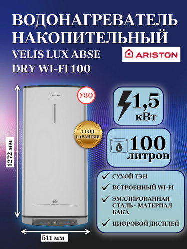 АРИСТОН Velis Lux Abse Dry Wifi накопительный водонагреватель электрический (100 л) / ARISTON Velis Lux Abse Dry Wifi водонагреватель накопительный сухой ТЭН (100 л)